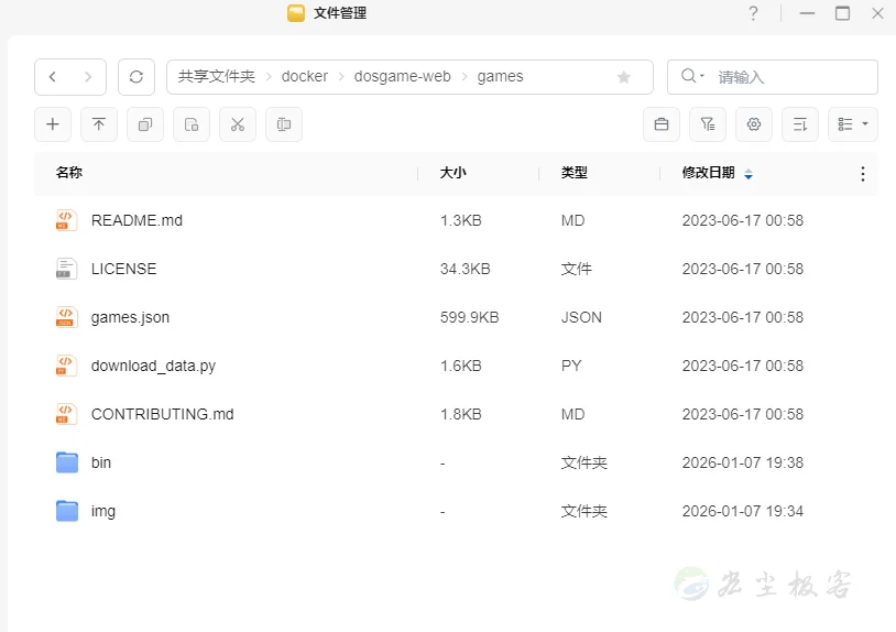 volumes: - ./games:/app/static/games:此配置将本地游戏文件夹挂载至容器内。请注意,需先在本地文件夹中下载游戏及其运行所必需的文件,之后方可成功启动容器。